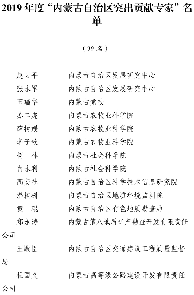 满全荣获2019年度“内蒙古自治区杰出人才奖”