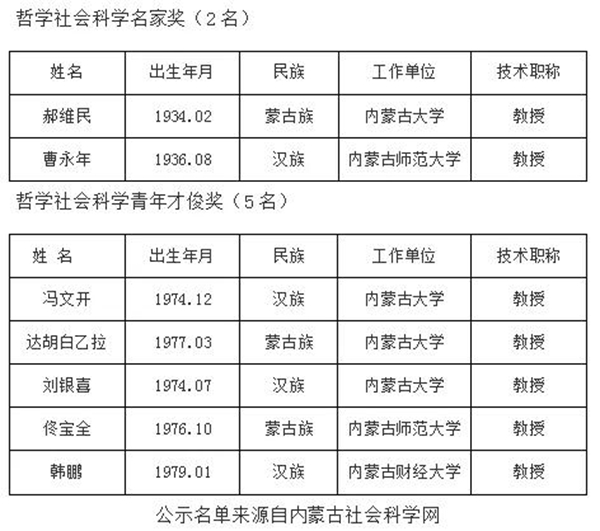 曹永年荣获哲学社会科学名家奖,佟宝全荣获哲学社会科学青年才俊奖