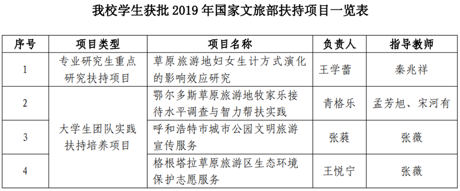 我校获批2019年国家文化和旅游部3项“大学生团队实践扶持培养项目”、1项“专业研究生重点研究扶持项目”